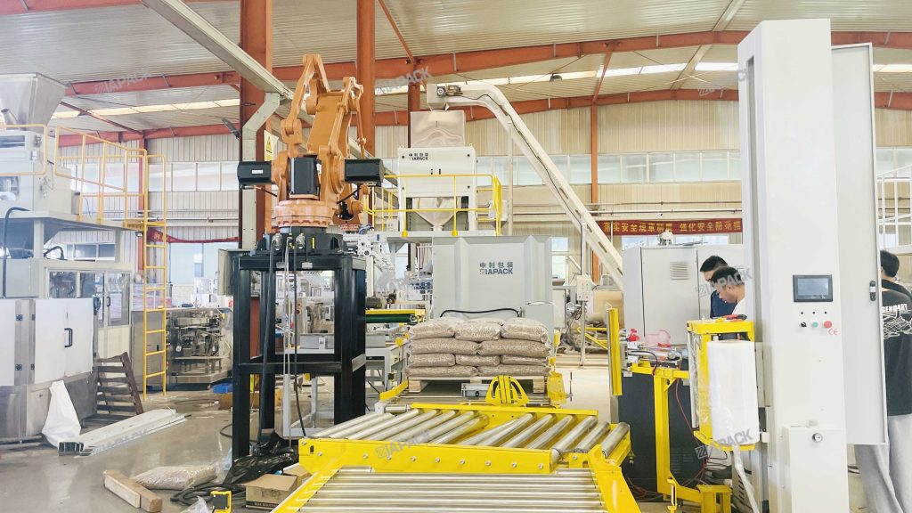 Yn ddiweddar, mae ein cwmni wedi cwblhau set o 15kg llawn awtomatig pwyso gronynnau pren, gwneud bagiau a phecynnu, a paledizing llinellau cynhyrchu fel y trefnwyd. Ar ôl prawf ar y cyd gan beirianwyr mecanyddol a pheirianwyr meddalwedd, anfonwyd y peiriant i'r wlad gyrchfan De Korea ar Awst 4ydd.