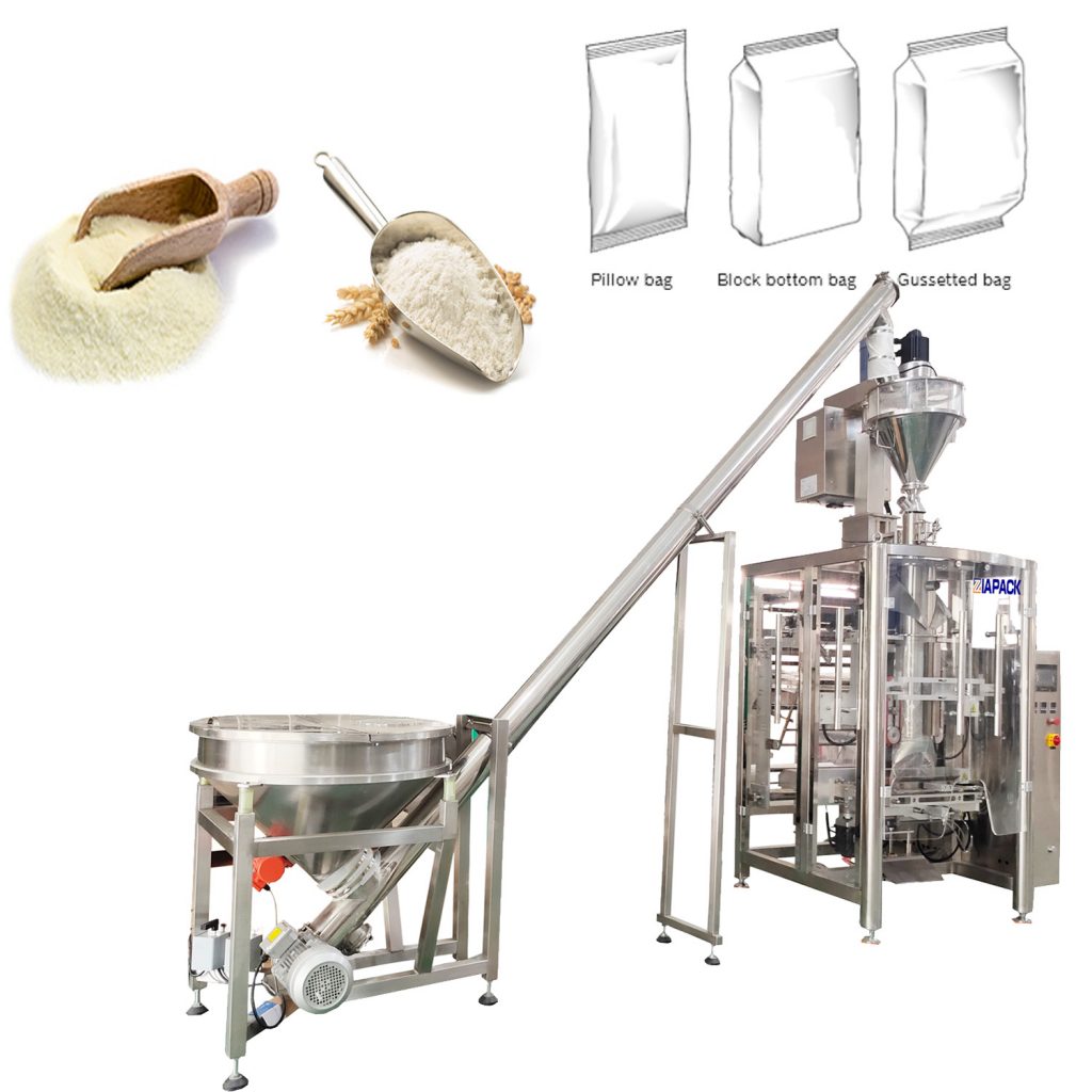This machine unit is including one set ZL1100 vertical bag forming filling sealing machine and one set ZL2000 auger measuring machine .The whole machine unit can reach automatic bag making ,Product weighing ,product filling sealing and date coding .Widely use for packing wheat flour ,coffee powder and milk powder and other powder product .