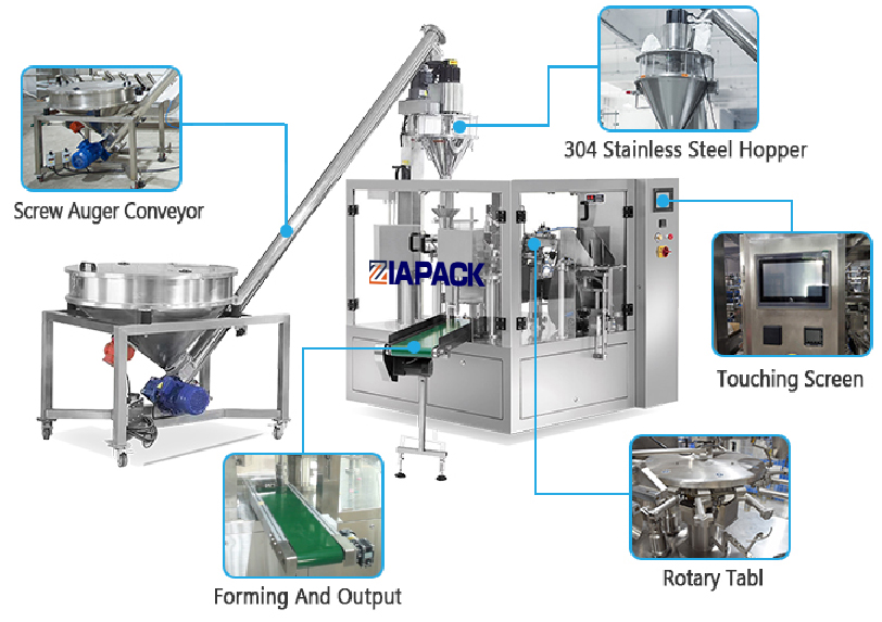 Gall y peiriant hwn gymryd y bag yn awtomatig, agor y bag, llenwi'r deunydd a selio'r bag. Defnyddir yn helaeth ar gyfer pecynnu gwahanol ddeunyddiau powdr.