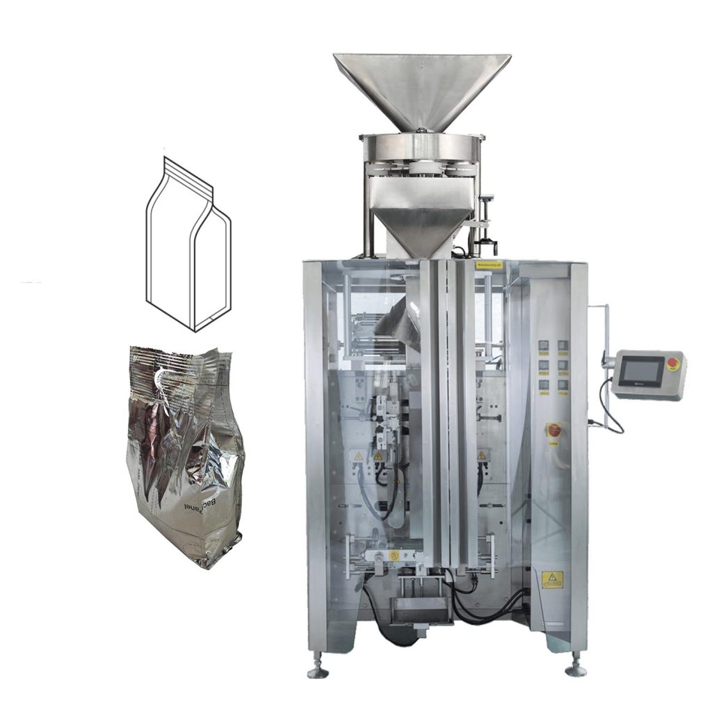 Cyfuno pecynnau pwyso a fertigol aml-droed awtomatig mewn un uned (technoleg 2 mewn 1), yn cael ei reoli gan PLC