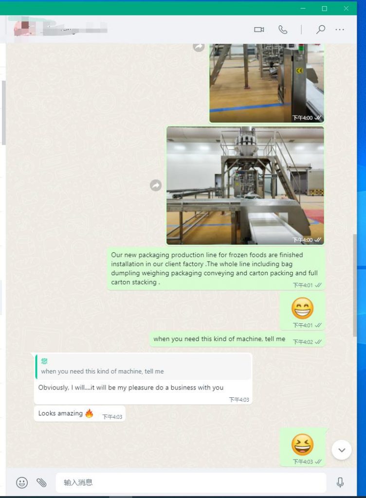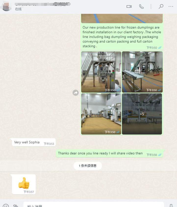 Gosodwyd llinell pacio a carton bag bwyd wedi'i rewi awtomatig arall yn llwyddiannus yn ffatri'r cwsmer!
