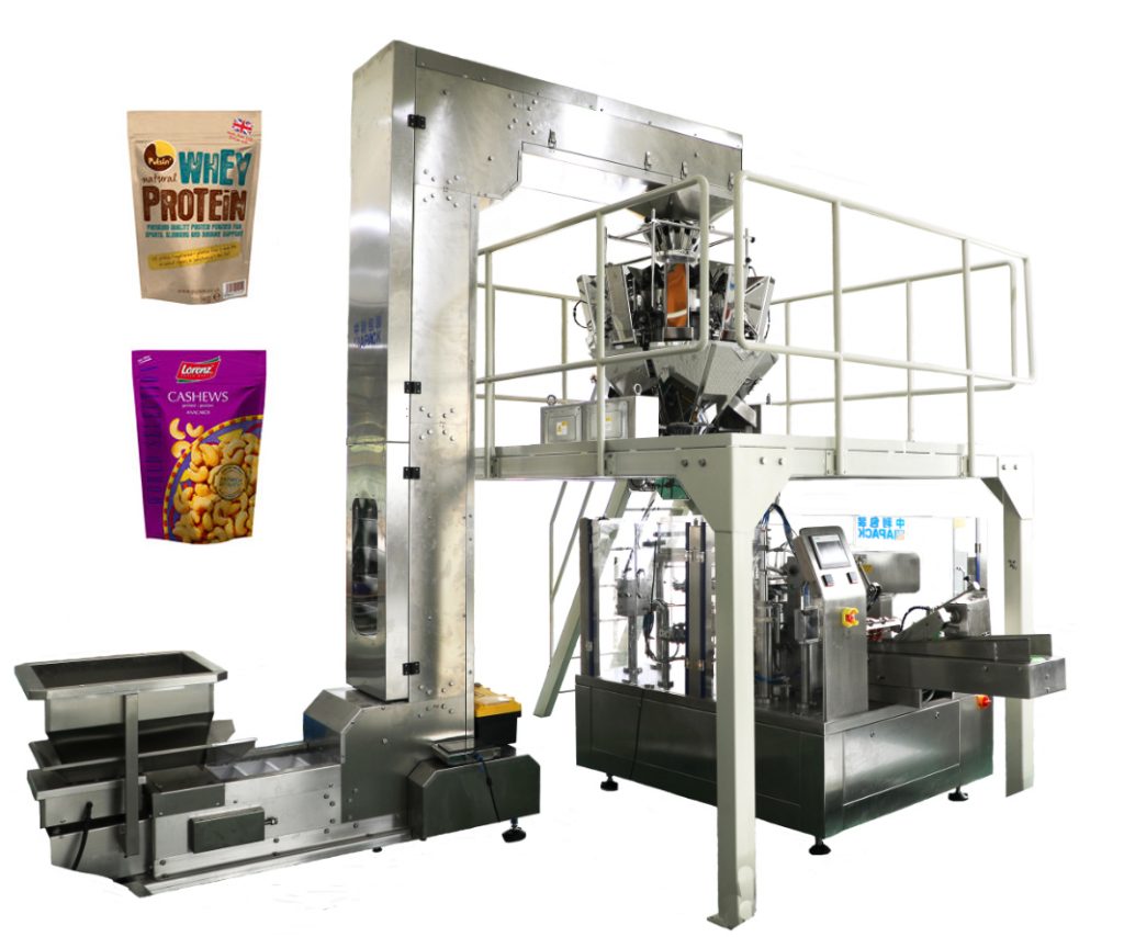 Peiriant pacio bag Rotari gyda dosio gwahanol (fel wehead aml-bennawd, llenwad arlliw, llenwad hylif ac ati) yn gallu bod yn addas ar gyfer pacio awtomatig ar gyfer gronynnog, powdr, hylif, gludo mathau etc.Different o gynnyrch gyda'r cwdyn zipper stand-up premiwm ac yn y blaen.