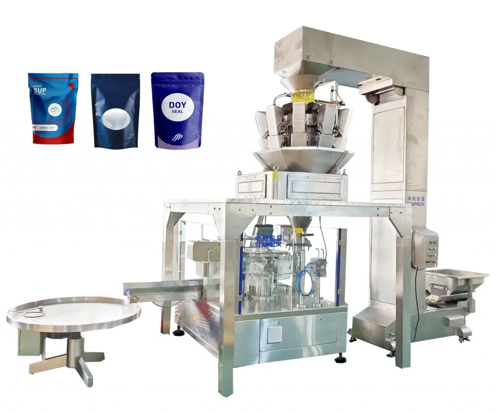 Mae peiriant llenwi a selio pouch a wnaed ymlaen llaw, sy'n cynnwys 8 gorsaf waith o effeithlonrwydd a sefydlogrwydd, yn pwysleisio'r pecyn o fagiau stand, bag zipper, bag ysbwriel, a gwahanol blychau a wnaed ymlaen llaw. Wedi cydweithredu â systemau dosio gwahanol (cyflenwad peiriant cyfunol / gwehyddu / sgriw weinydd / piston) a chludwyr codi awtomatig, caiff ei ddefnyddio'n eang i gronynnau, hylif a phowdr.